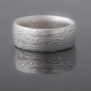 All Arn Krebs Mokume Gane Rings are CUSTOM and made-to-order. Rings are available in any size, width, profile, pattern, metal combination and finish. You can select a stone from our inventory, have us find something special, or provide your own stone for setting. All rings are made individually from start to finish, so each one is completely unique and will vary slightly from what is pictured. Variations in color and patterning are natural features of Mokume Gane and photos shown are for illustration purposes only.